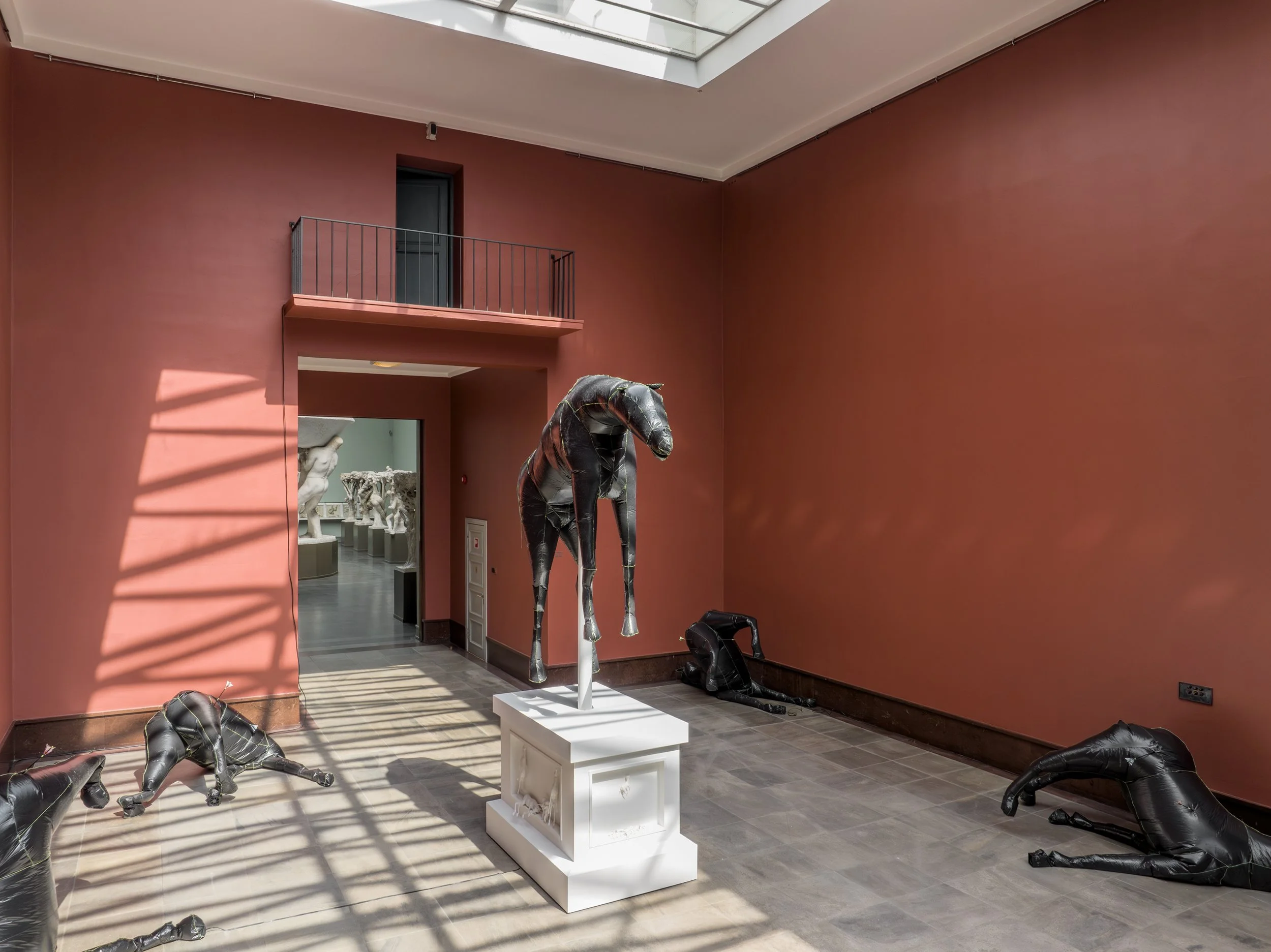 Grinde's art is characterized by its blend of classical sculpture traditions and contemporary materials, often addressing the vulnerability of social and political systems. His work reflects a deep engagement with historical and cultural transformations, making poignant statements about the evolution from industrial to cultural economies.