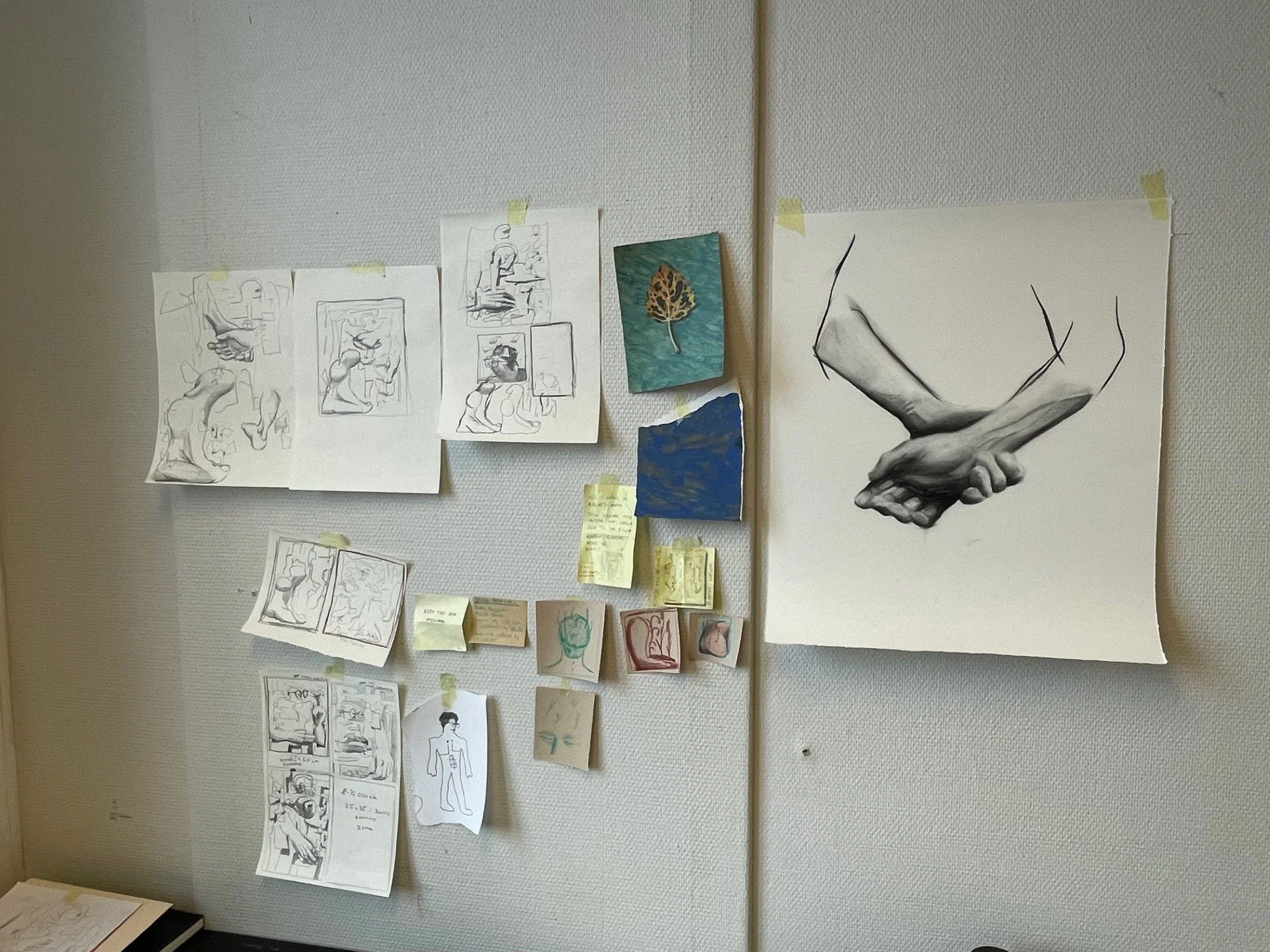 There’s this work called “Framvekst” which I’ve made both a small drawing and a big painting of. The idea came from talking to a friend about fragmented figures in art history, like you see in Cubism for instance. I’ve always associated fragmentation with brokenness, and so I wanted to do a more positive spin on that idea. I’m very interested in contrasting, emotional tension, and so the broken figure became this way of dealing with the tenderness, beauty and hope of healing after having been ripped to pieces. “Framvekst” also refers to the Japanese tradition of Kintsugi, where repairing the cracks of for example a vase with gold highlights the beauty of the object's history.