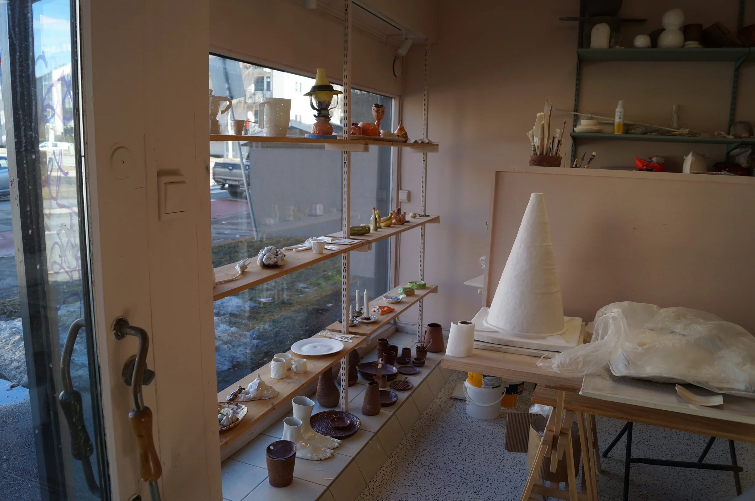 During my internship at SKOG Art Space, I've had the privilege of talking with artists in Oslo. Among them where the ceramists Tonje Paus and Nellie Jonsson. They both studied at Kunsthøgskolen in Oslo and currently co-share the art studio "Klumpen", alongside other artists.