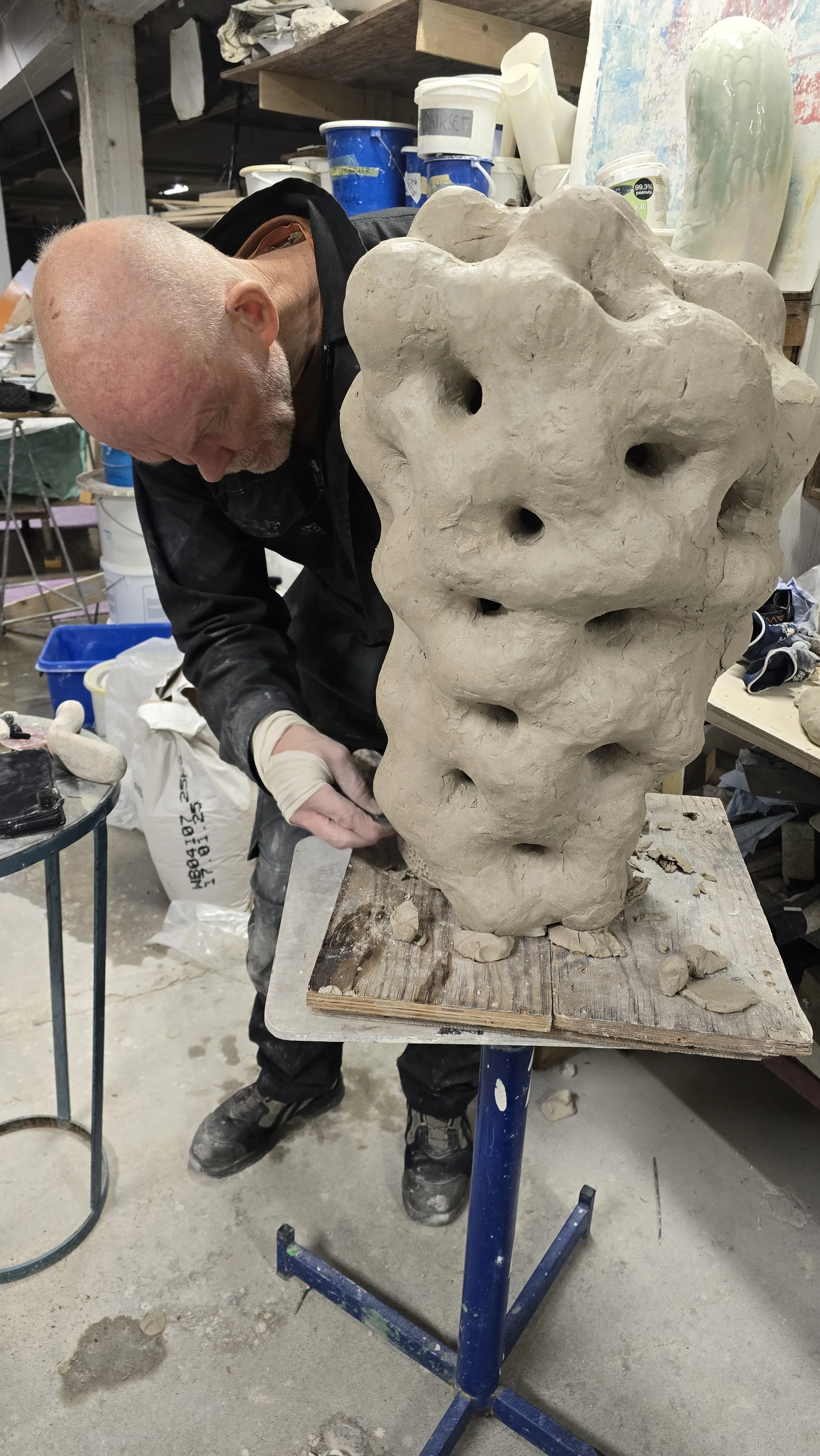Eirik Gjedrem (b. 1959, Ås) lives and works in Søgne, Norway. He works primarily with ceramics, and throughout his artistic practice, he has explored a deep fascination with water and its connection to the subconscious. The movements and depths of the ocean mirror the inner landscapes of the human psyche, forming a central theme in his work. Water symbolizes an eternal force – constantly moving through all forms of life – and serves as a metaphor for change, flow, and interconnectedness. Clay, Gjedrem’s material of choice, shares many of water’s characteristics: plasticity, transformation, and sensitivity. The presence of water is essential to the clay’s ability to be shaped and altered. Pierced surfaces, layered glazes, and vibrant colors create an illusion of depth, reflecting the multifaceted nature of water. Texture, contrast, and movement lend his works a dynamic, living, and weightless quality. Gjedrem is particularly drawn to the unique physical and mental state experienced underwater. Diving is both a source of inspiration and a daily ritual – a morning practice that brings focus, clarity, and often solutions to artistic or technical challenges. He also gathers materials directly from the sea, such as seaweed and kelp, which he uses to create imprints or as textural elements. Selected Solo Exhibitions Format Oslo (2024), Kunstnerforbundet (2022, 1995), Kunstsilo / Sørlandets Kunstmuseum (2010), KRAFT Bergen (2019), Telemark Kunstsenter (2020), Risør Kunstpark (2015), Ski Kunstforening (2024), Søgne gamle prestegård (2016, 2004), Sandnes Kunstforening (2002), Centrum Goed Werk, Zulte, Belgium (2001), Galleri RAM (2000), Kunstpunkt Lista (2023) Selected Group Exhibitions Agder Kunstsenter (2020), Peder Balke-senteret (2019), Sørlandets Kunstmuseum (2015, 2006), Hå gamle prestegard (2021, 2004), Galleri Format (2012, 2003) Public Collections Kunstsilo, The National Museum of Norway, KODE Art Museums, CLAY Museum of Ceramic Art Denmark, Röhsska Museum, Telenor Art Collection, Nordnorsk Kunstmuseum, Nordenfjeldske Kunstindustrimuseum, Vest-Agder County Council, among others Selected Public Commissions Søgne gamle prestegård (2023), Jens Bjørneboes plass, Kristiansand (2018), Justvik School, Kristiansand (2017), Moldebadet, Molde (2011), Badehallen, Skien Leisure Park (2008), University of Tromsø (2007)More on Christoffer: